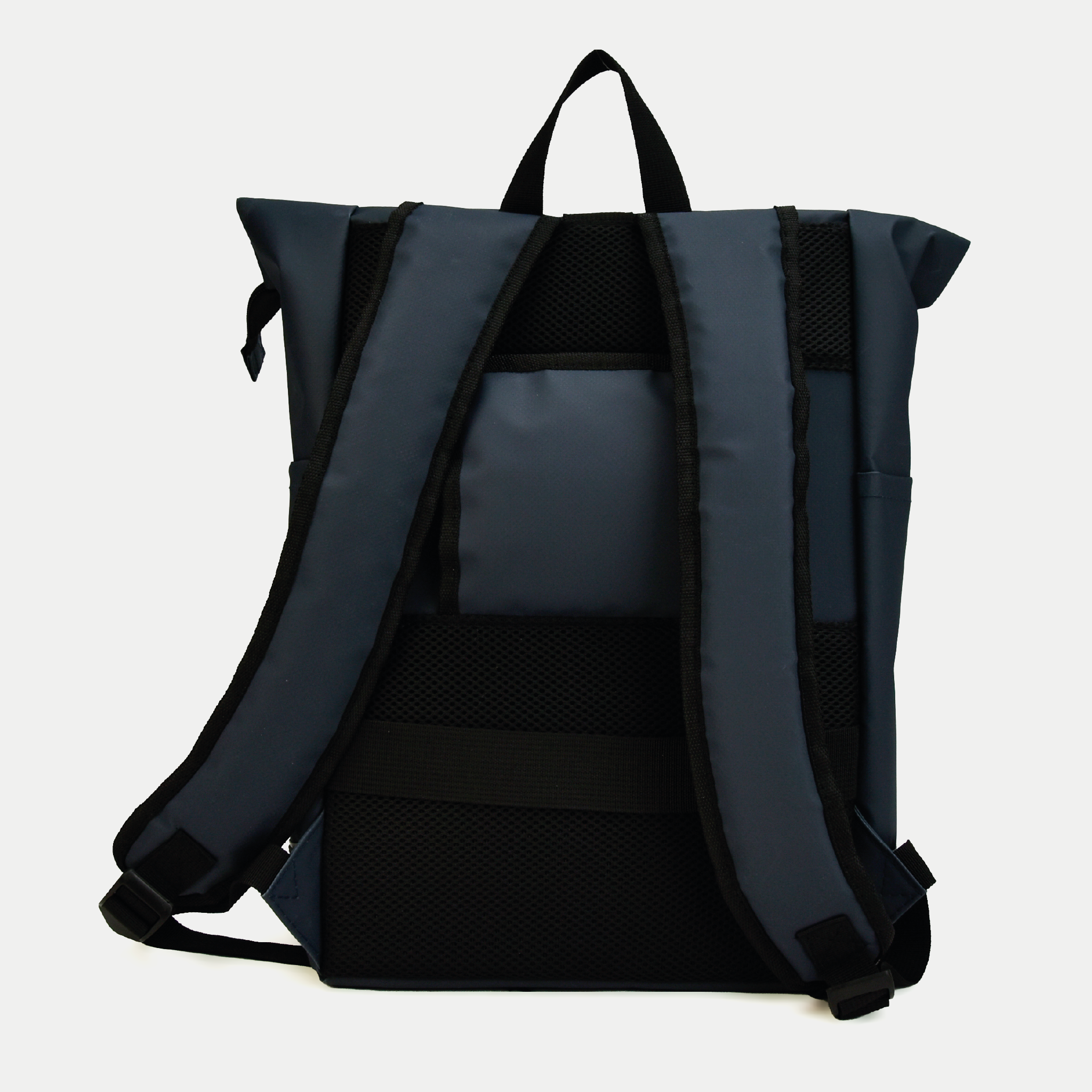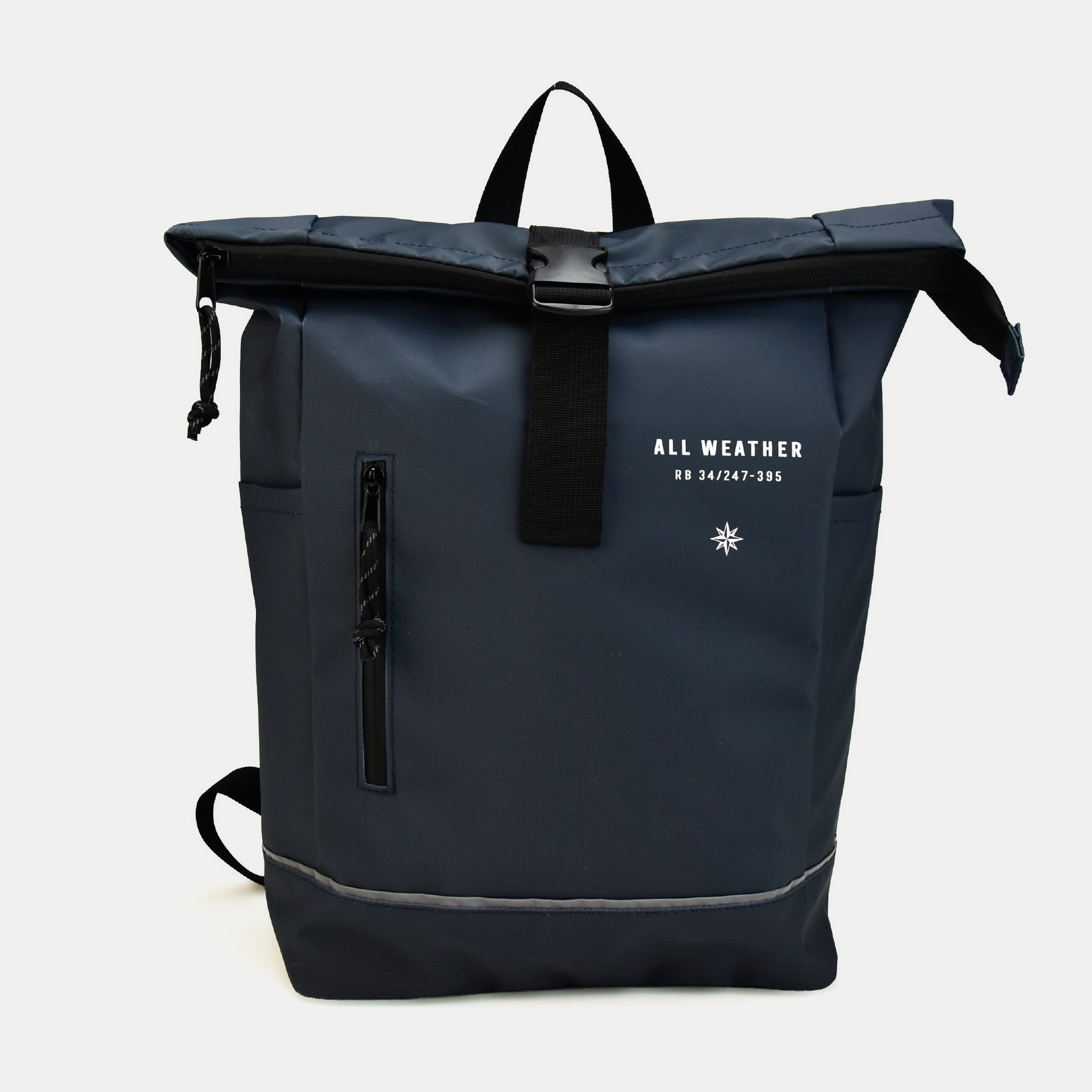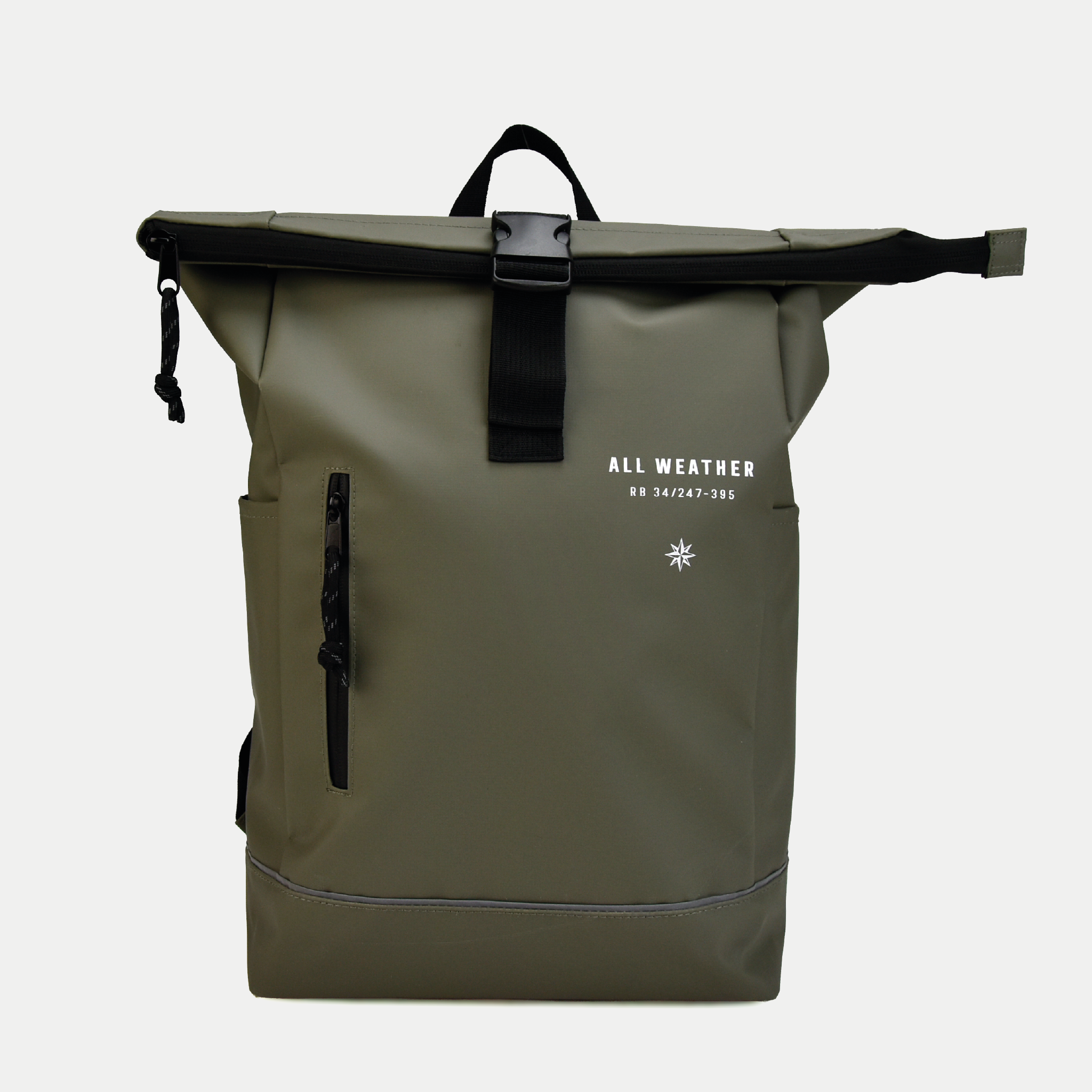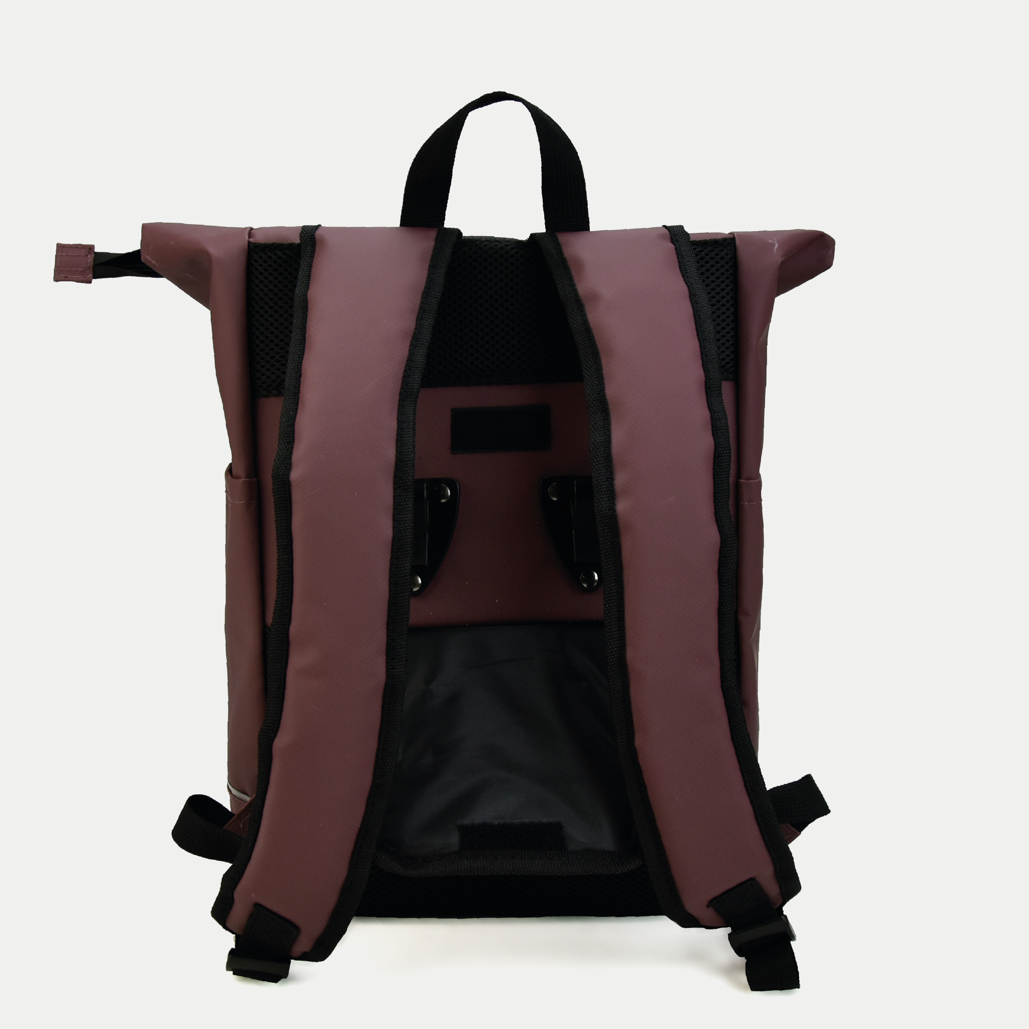 All-weather bicycle/backpack with laptop compartment and side pocket.
