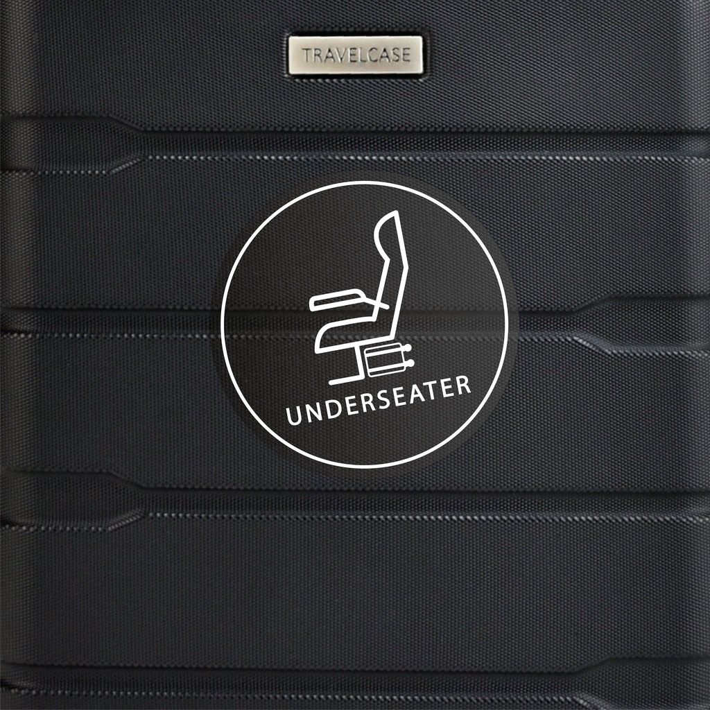 Dankzij de compacte afmetingen van de Underseat-trolley past deze handbagage onder elke vliegtuigstoel, terwijl de opvallende sticker zorgt voor directe herkenbaarheid.